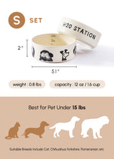 - S: For pets under 15 lbs [ D5.1'' x H1.9'' ] Capacity: 300 ml / 12 oz / 1.6 cups