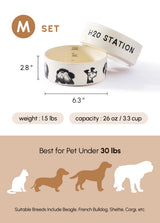 - M: For pets under 30 lbs [ D6.2'' x H2.7'' ] Capacity: 700 ml / 26 oz / 3.3 cups